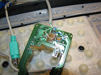 Тому було прийняте рішення використати старий маніпулятор “миша” - Genius як універсальний контролер PS/2 для колеса “прокрутки” клавіатури. Контакти з колеса клавіатури “прокрутки” під паяв до датчиків маніпулятора “миша”, а роз’єм PS/2 під’єднано до комп’ютера як за звичай.