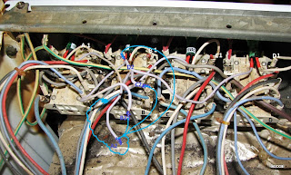 Далі - електроніка, розрізав проводи що з’єднували усі контакти перемикачів конфорок (A-B) до одного індикатора увімкнутого стану (див. фото 5). Та підключив індикатори до вивільнених білих проводів А-В (див. фото 6,7).