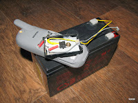 Вставив адаптований акумулятор у телефон, і підключив до акумулятора 12В.