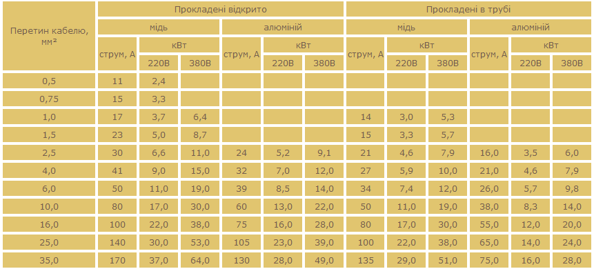 Розрахунок перетину електричного кабелю