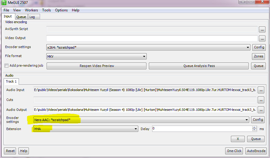 Вибравши файл .AC3 і профіль Nero AAC: *scratchpad* (без перестискання).