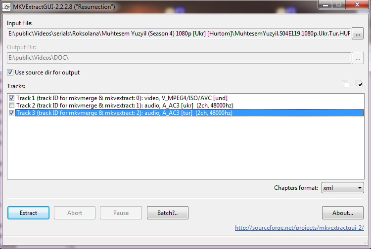 Якщо розібрати MKV на складові за допомогою програми MKVExtractGUI