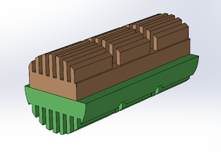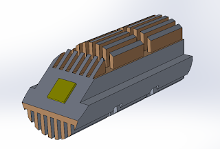 Було використано плоский радіатор від процесора, котрий був розпиляний на дві частини, потім ці частини були склеєні термічним клеєм “AG TermoGlue” 0.9W/mK.