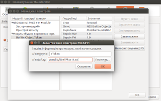 Токен можна використати у Mozila Thunderbird та Firefox якщо підключити модуль прописав шлях до бібліотеки.