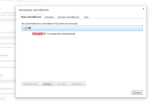 cертифікат користовача у Google Chrome що зберігається у токені