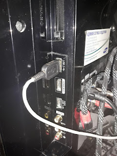 Телевізор має USB порти для підключення зовнішніх пристроїв. З’ясував що у телевізорі на USB портах живлення подається тільки коли ввімкнений телевізор. Чому б і не використати напругу +5В USB для ввімкнення пристроїв через просте реле з набору andruino.