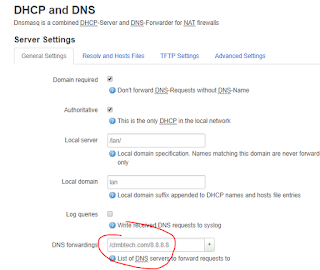 Реалізація додавання параметру DNS forwardings - /clmbtech.com/8.8.8.8