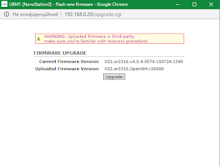 Надалі завантажив останню версію airOS з сайту виробника (XS2.ar2316.v4.0.4.5074.150724.1340.bin - 2015-07-27), і оновив через інтерфейс airOS.
