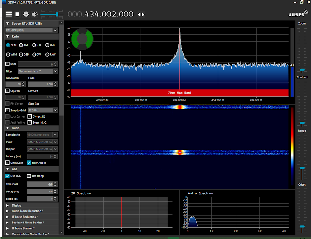 Використовуючи аналізатор RTL-SDR і розмістивши сенсор не далеко від антени RTL-SDR, я натискав клавішу “ТХ” на бездротовому сенсорі і зміг визначити робочу частоту сенсор це 434.002MHz, за потужним і синхронним за натисканням клавіші “ТХ” сигналом .