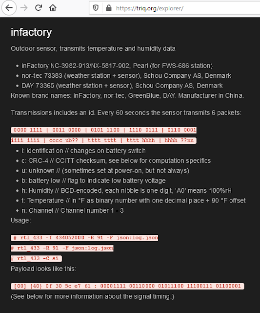 Channel : 1 Battery OK: 1 Temperature: 31.60 F Humidity : 92 % Integrity : CRC