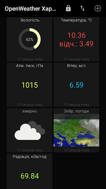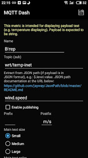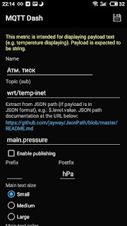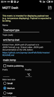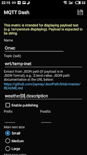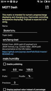 Тому встановив програму MQTT Dash (IoT, Smart Home), і вирішив реалізувати простішу панель для показу поточних даних погоди.