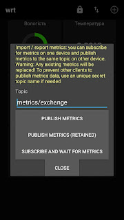 Для простоти налаштування я робив налаштування в своєму мобільному телефоні, а потім налаштування публікував у топік metrics/exchange засобами програми.