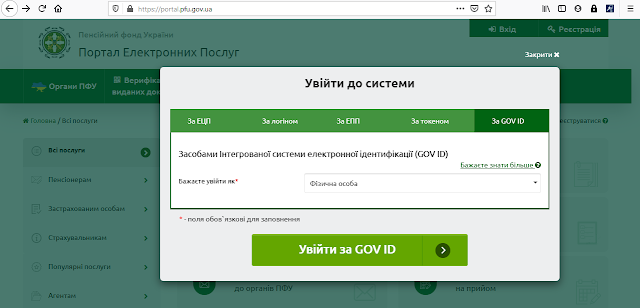 Авторизація в порталі Пенсійного фонду за GOV ID