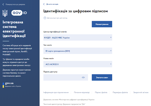 Вирішив скористатися можливістю авторизацією за “GOV ID” бо знаю що працює з ID-card.