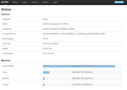 Маю з старого нетбуку Asus 1001PX зроблений WiFi принт-сервер на основі OpenWRT.