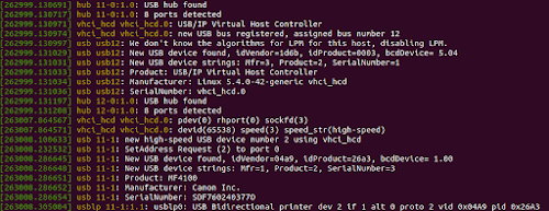Bus 011 Device 004: ID 04a9:26a3 Canon, Inc. MF4100 series