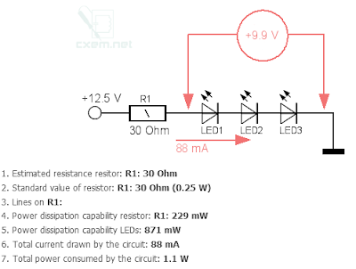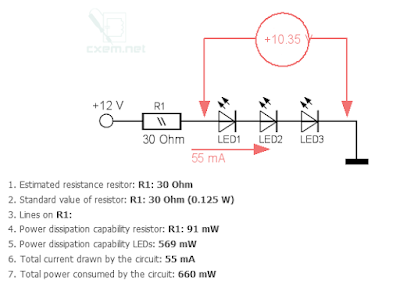 Для забезпечення силу струму в 55 мА, напруга падіння на світлодіод має бути 3.45V:
