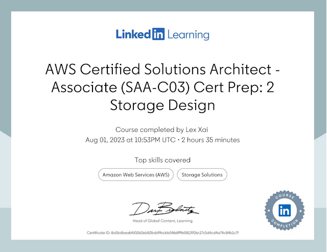 Прослухав курс AWS Certified Solutions Architect - Associate (SAA-C03) Cert Prep: 2 Storage Design - LinkedIn Learning!