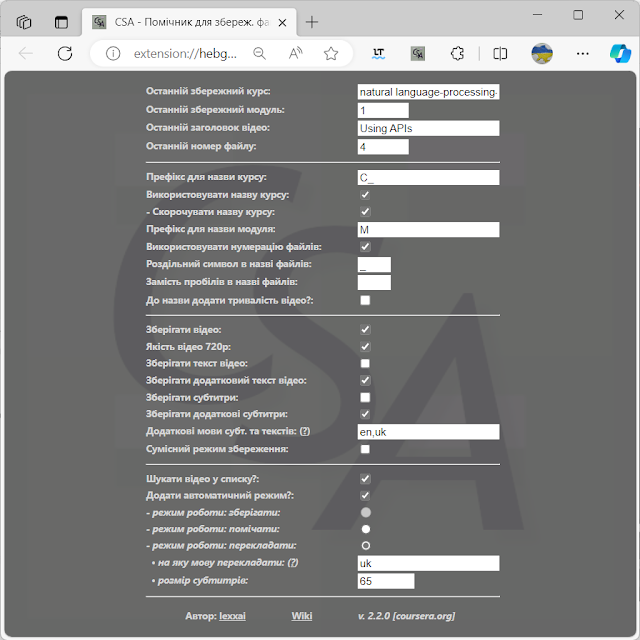 "CSA - Помічник для збереження файлів з Coursera" - розширення для браузера. Оновлення - version 2.2.0