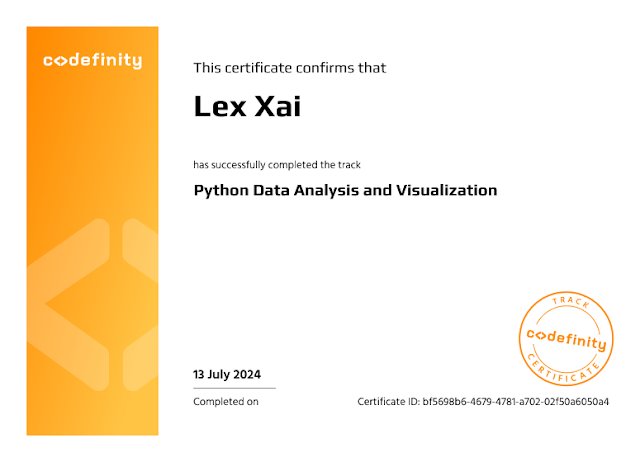 Codefinity. Mastered all the "Python Data Analysis and Visualization" specialization courses.