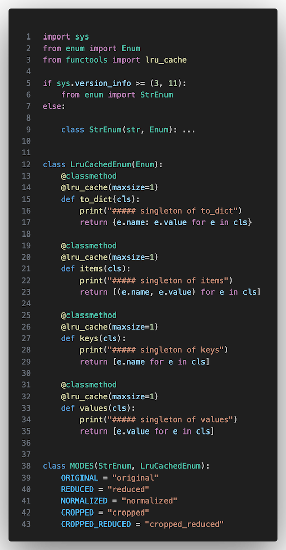 Читаючи How to get all values from python enum class? знайшов цікаве для себе рішення для застосування class enum.Enum Python у парі з @functools.lru_cache .