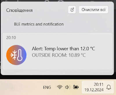 З набуттям нових знань та навичок під час навчання я почав сприймати код по-новому. А тут ще й зима настала: овочі на балконі потрібно було вчасно заносити до кімнати, щоб уникнути їх промерзання. Заморозки наближалися, тому я вирішив вдосконалити проєкт, додавши функцію сповіщень про критичні температури.